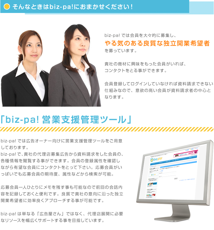 ビジネスパートナーを探そう!代理店募集の biz-pa! [ビズ・パ!]オープンしました!