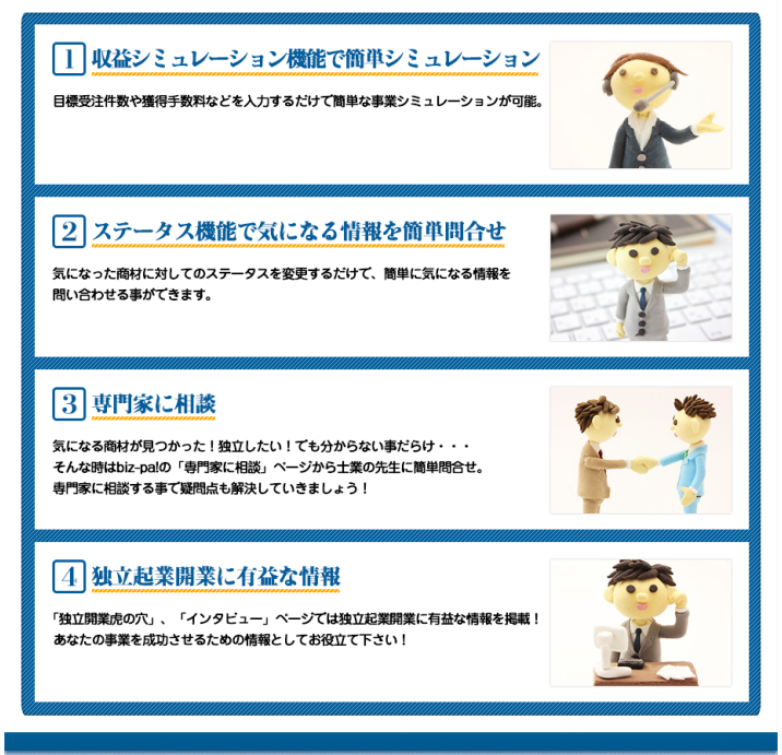 どうぞbiz-pa! に無料会員登録し、フル機能を存分にお使い頂き、独立への道を目指されて下さい。